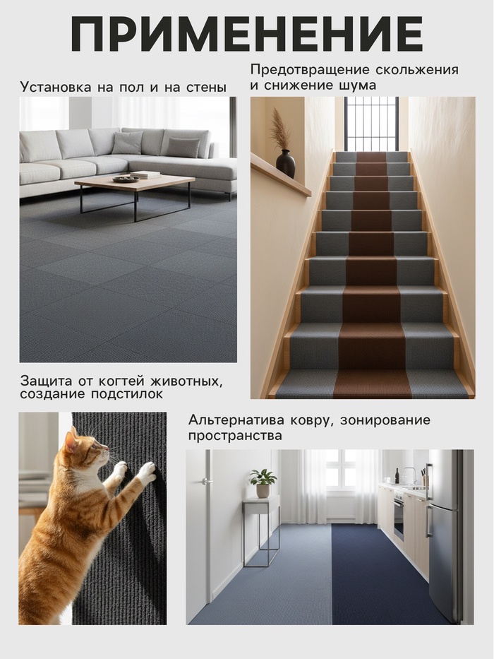 - Широкая область применения: подходит для пола, стен, лестниц и мест для домашних питомцев.
