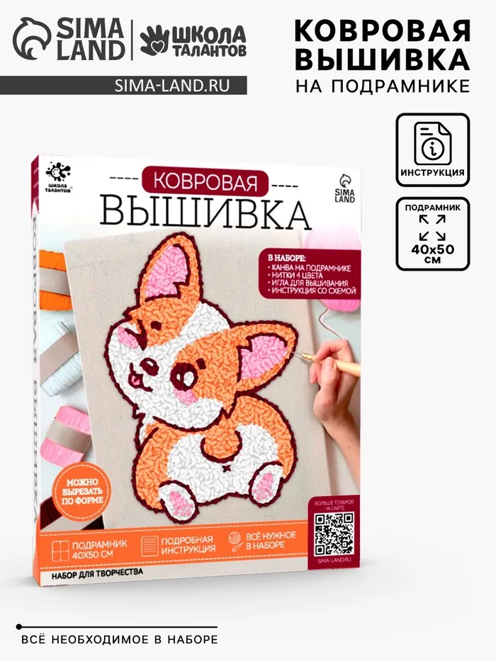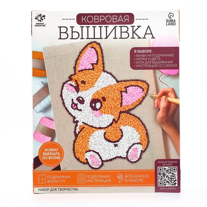 Ковровая вышивка на подрамнике «Корги», набор для творчества — Характеристики