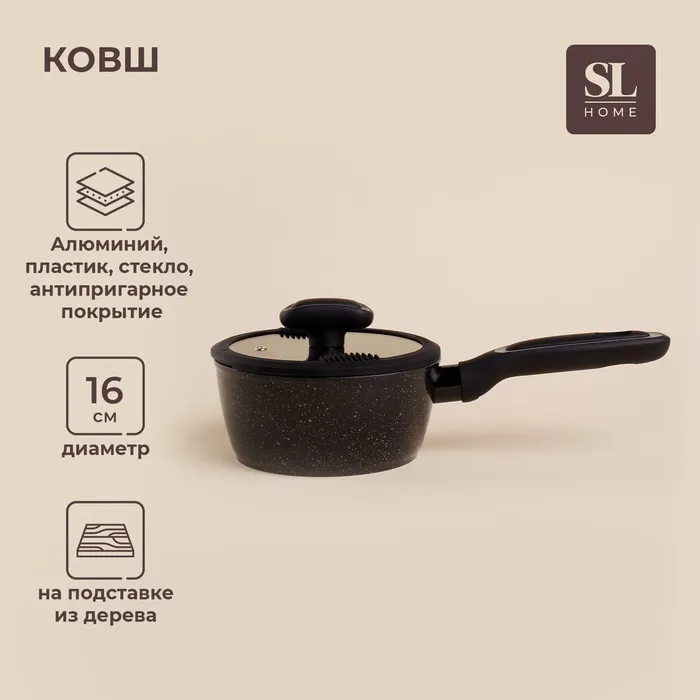 Ковш изготовлен из качественной нержавеющей стали 304 марки. Это безопасный материал, который при взаимодействии с пищевыми продуктами не образует соединений, вредных для организма человека.