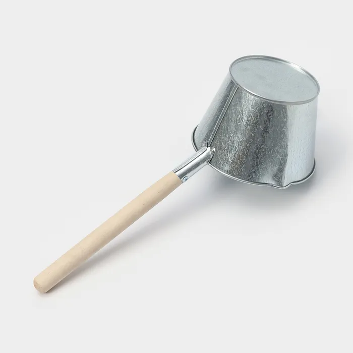 Удобная деревянная ручка позволит избежать прикосновения рук к горячему корпусу ковша и ожога горячим паром;