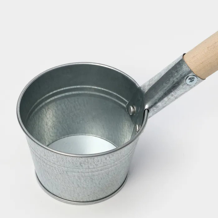 Оцинкованный ковш прекрасно впишется в оформление бани, где присутствует и дерево и сталь. Изготовлен из оцинкованной стали. Ему не страшен постоянный контакт с холодной и горячей водой.