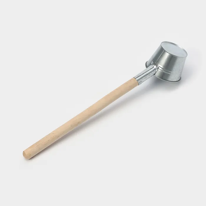 - Удобная деревянная ручка позволит избежать прикосновения рук к горячему корпусу ковша и ожога горячим паром;