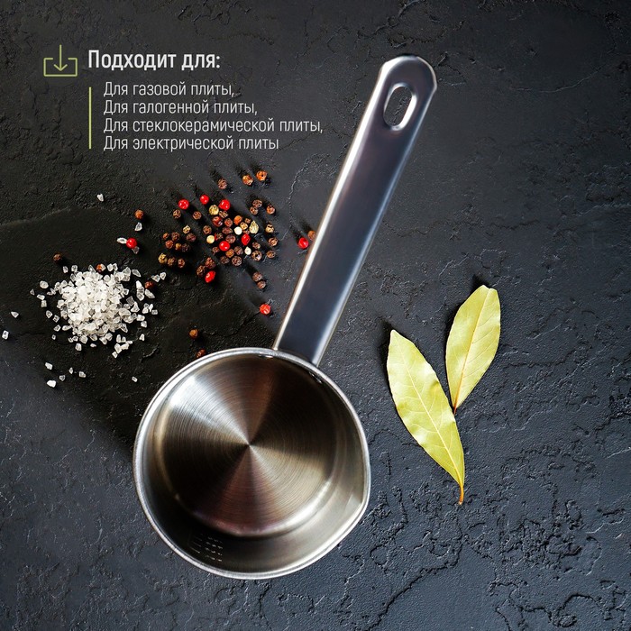 Ковш «Базис», 450 мл, d=10 см, с мерной шкалой, металлическая ручка, нержавеющая сталь — Характеристики