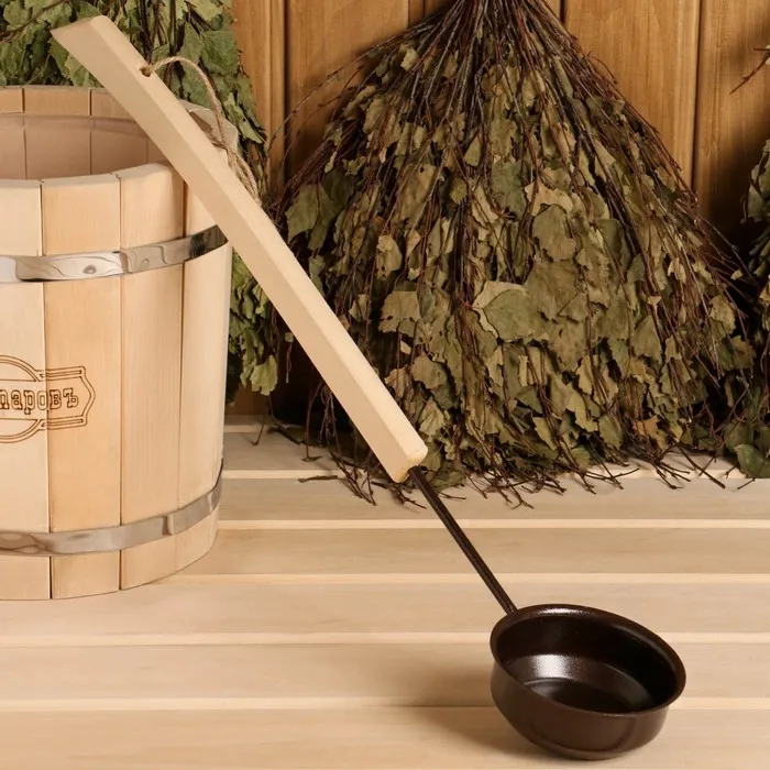 Ковш - черпак для бани и сауны, 200 мл, нержавеющая сталь, деревянная ручка, 70 см