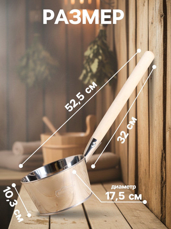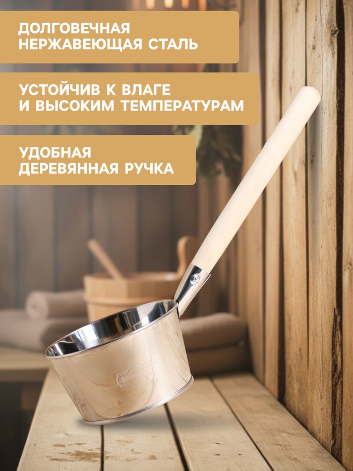 Ковш - черпак для бани и сауны, 1.5 л, нержавеющая сталь, деревянная ручка, «Добропаровъ» — Характеристики