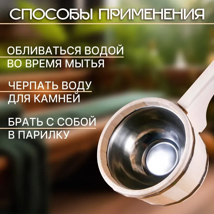 Ковш - черпак для бани и сауны, 900 мл, липа, нержавеющий обруч, 51 см, «Добропаровъ» — Характеристики