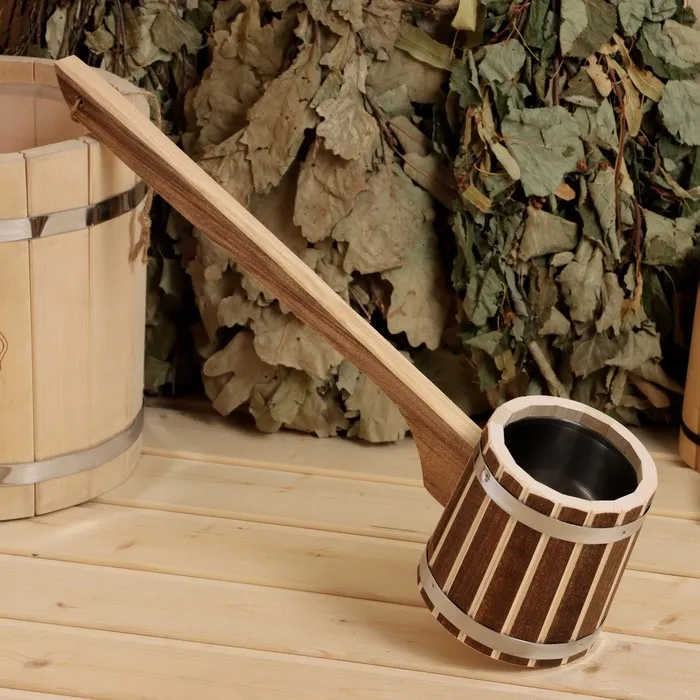 Ковш - черпак для бани и сауны «Добрыня», 500 мл, липа, нержавеющие вставка и обруч, 54 см, «Добропаровъ» — Характеристики