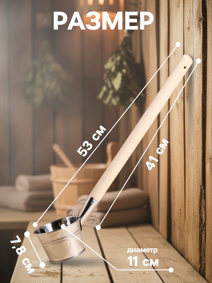 Черпак для бани и сауны из нержавеющей стали с деревянной ручкой от «Добропаровъ» — это надежный инструмент, который придает особую атмосферу вашему отдыху в бане.