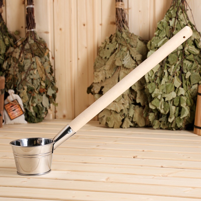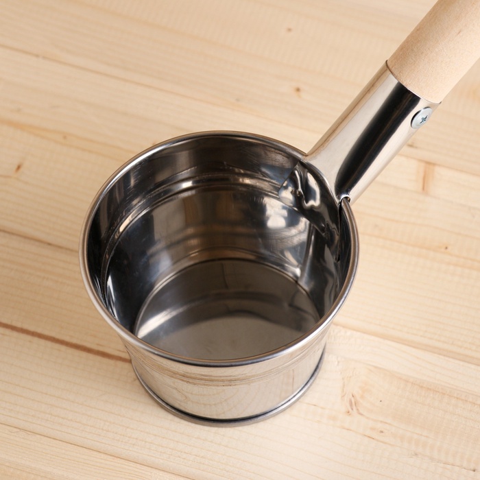 - Оптимальное наполнение: Объем 500 мл делает этот черпак идеальным для регулирования подачи воды на камни в парилке. Удобная горизонтальная рукоять способствует комфортному использованию.