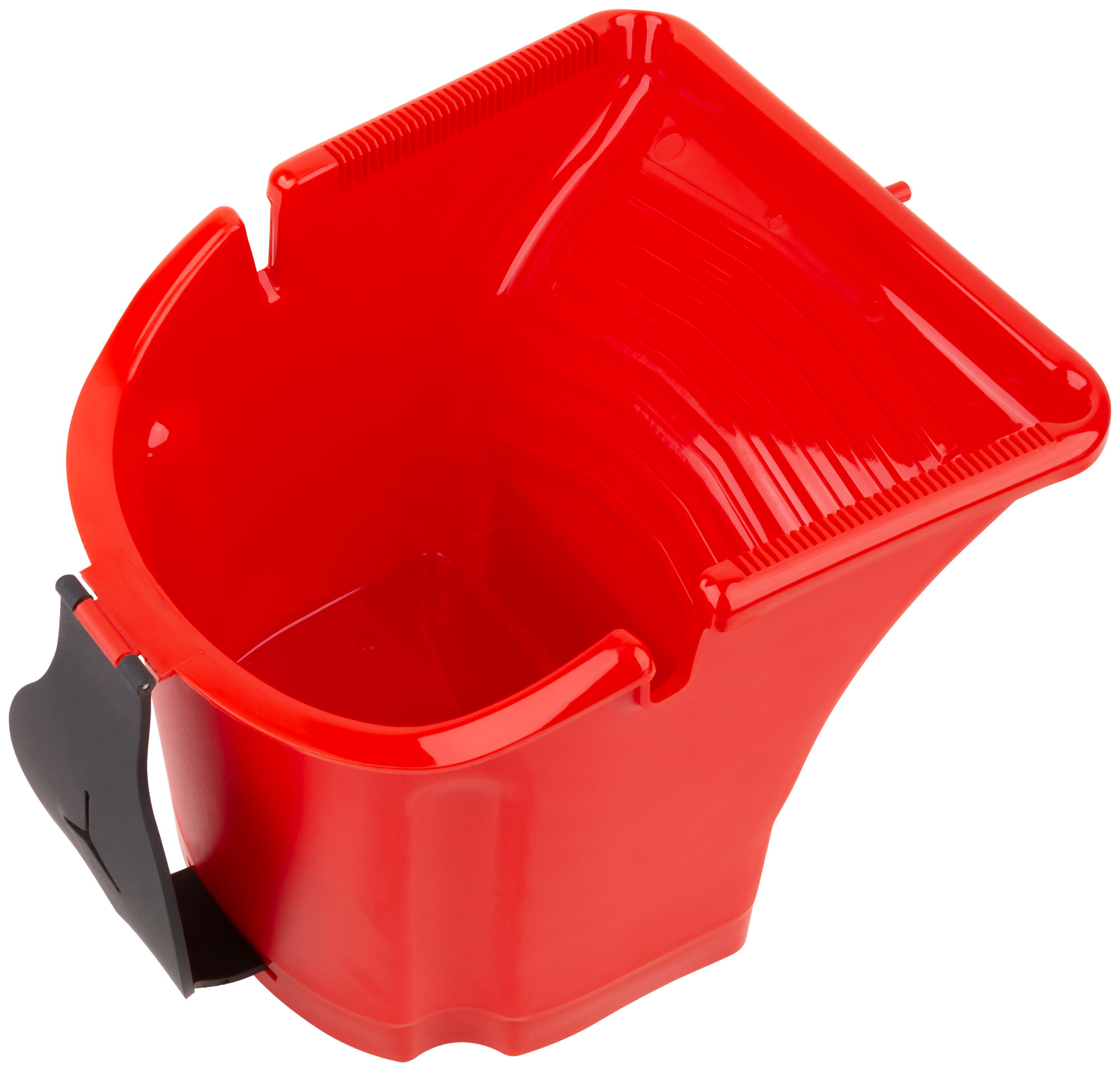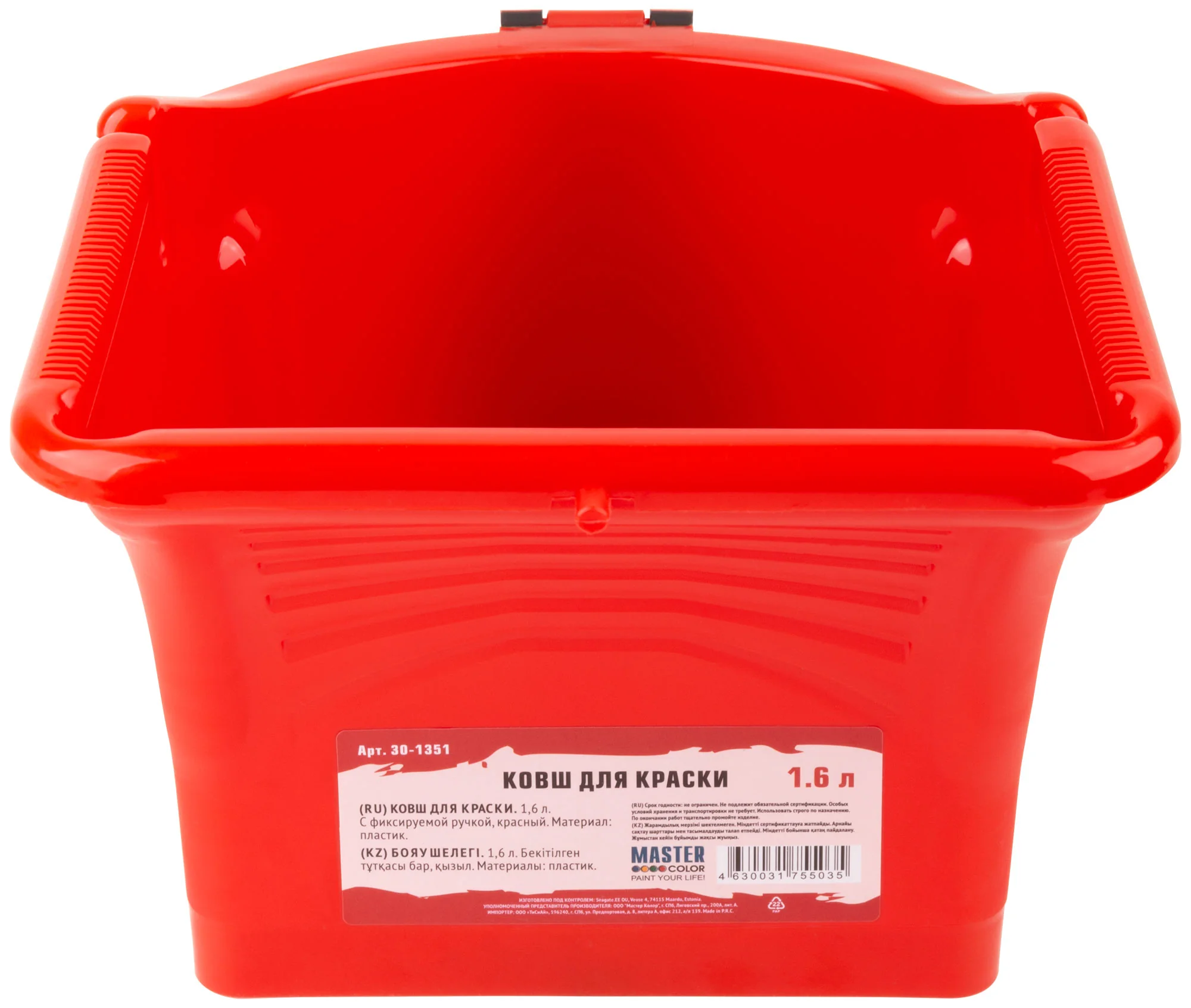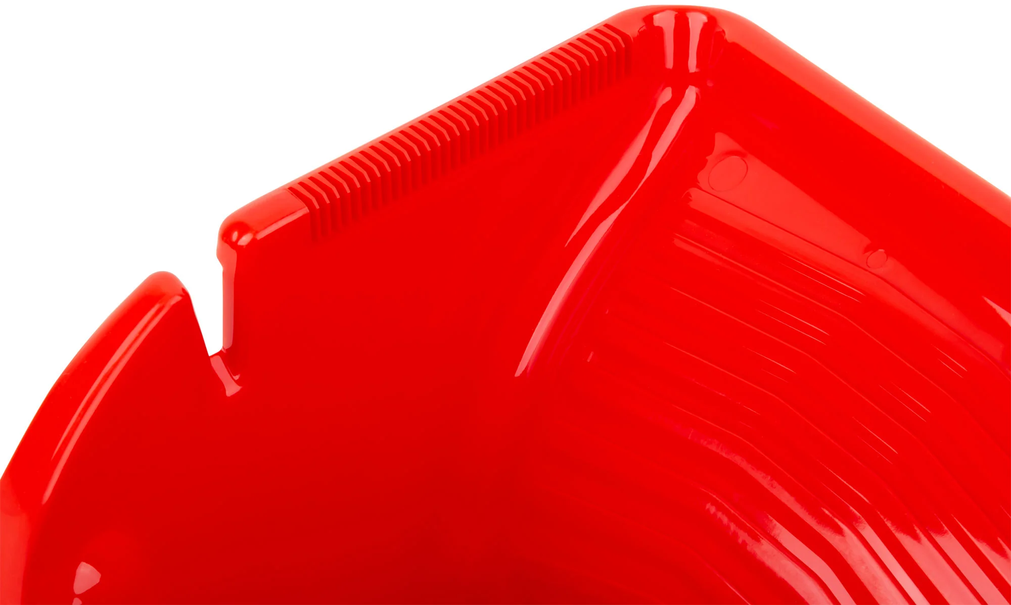 Преимущества использования данного ковша включают возможность размещения нужного количества краски без риска проливания благодаря устойчивой конструкции. Яркий красный цвет позволяет легко заметить его на рабочем месте.