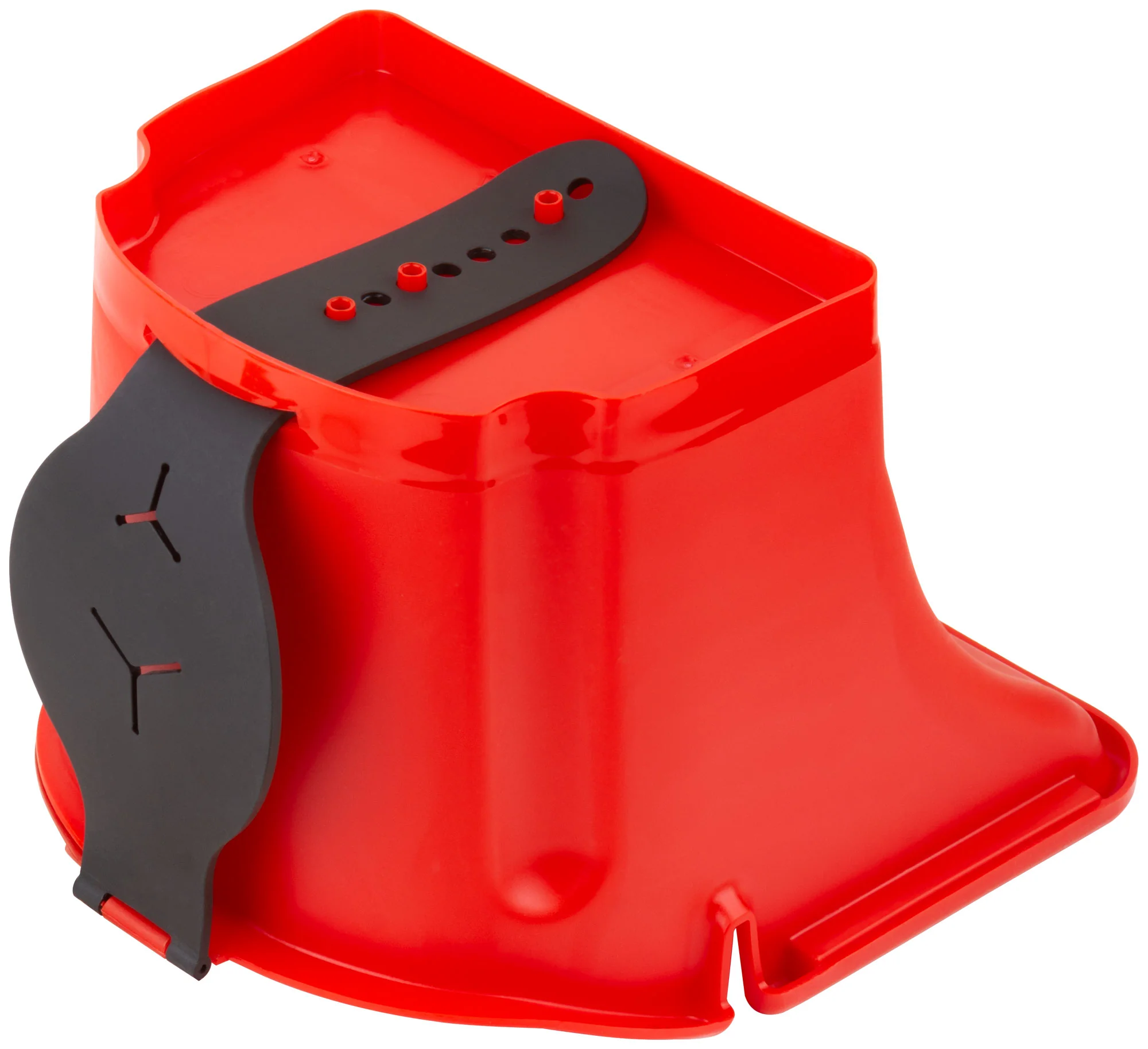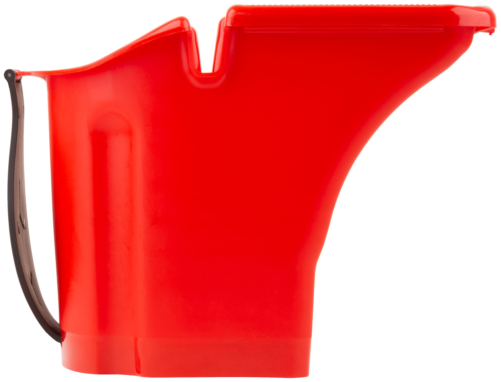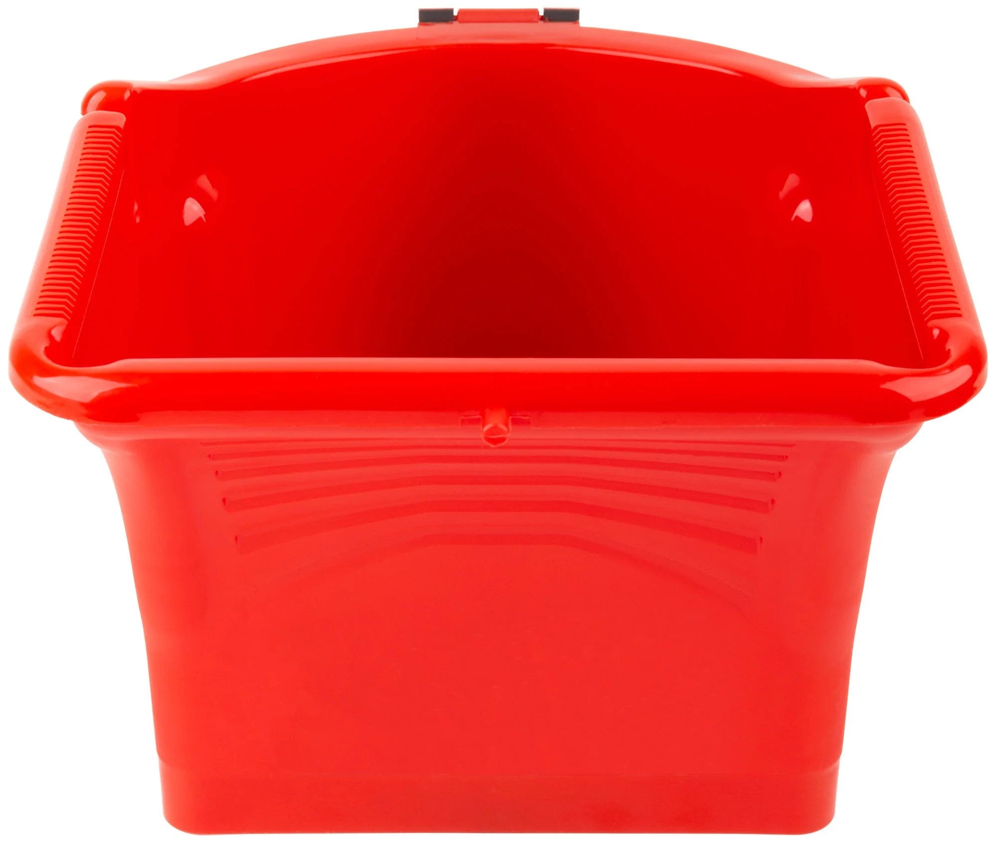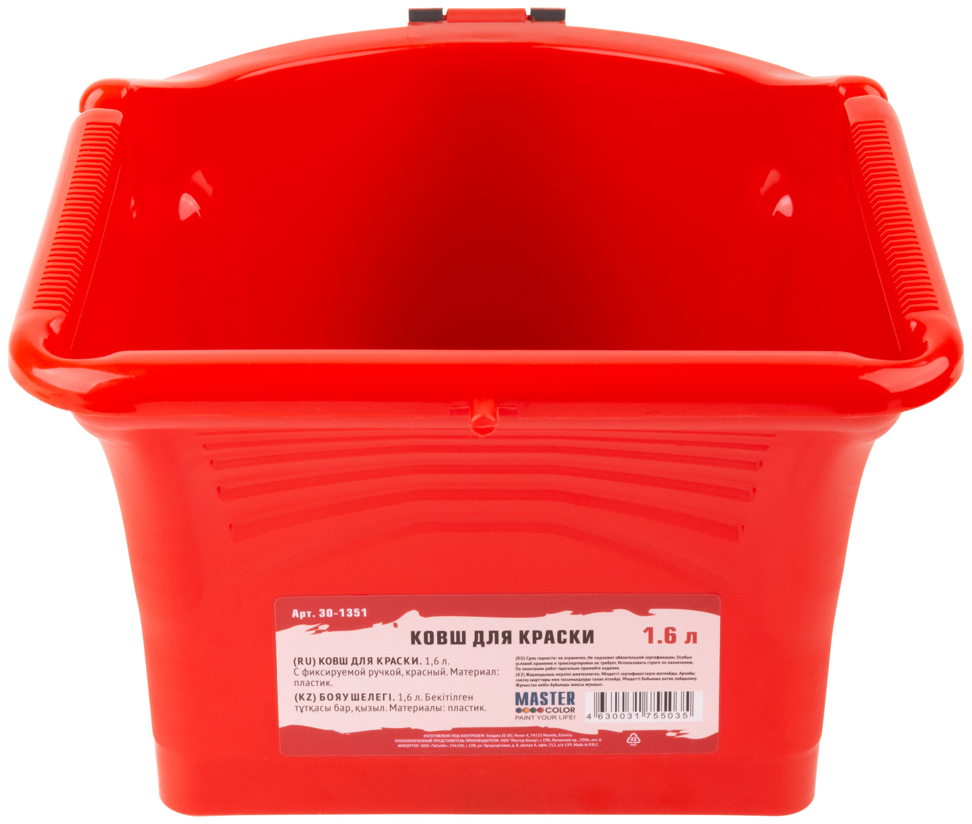 Преимущества использования данного ковша включают возможность размещения нужного количества краски без риска проливания благодаря устойчивой конструкции. Яркий красный цвет позволяет легко заметить его на рабочем месте.