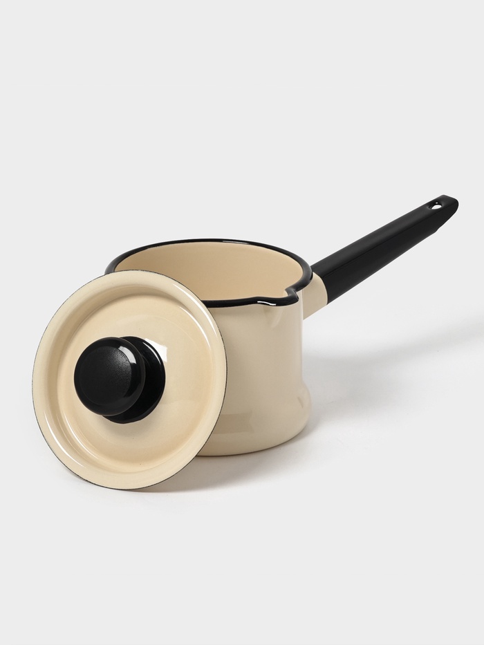 Ковш эмалированный, 1 л, с крышкой, без декора, цвет слоновой кости — Характеристики