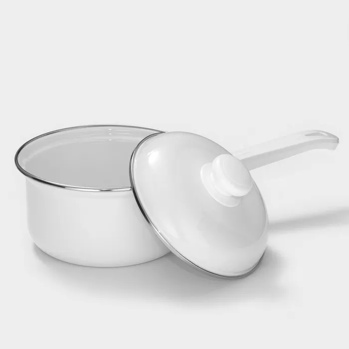 Ковш эмалированный цилиндрический, 1 л, без деколи, индукция, цвет белый — Характеристики