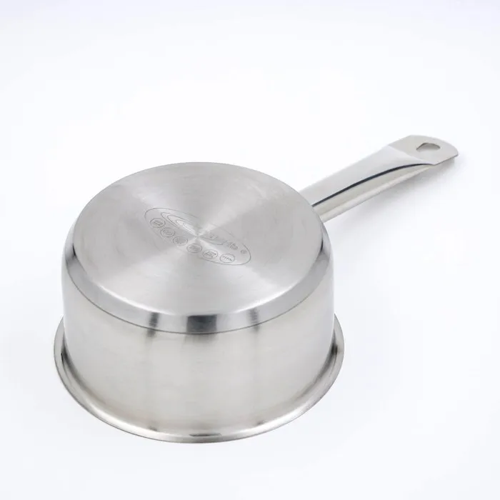 Предлагаемый ковш из нержавеющей стали станет удачной находкой для каждой хозяйки. Благодаря низкой теплопроводности модели приготовленное блюдо дольше остается горячим. Зеркальная полировка придаёт посуде благородный облик, а качественное однослойное дно гарантирует быстрый нагрев.