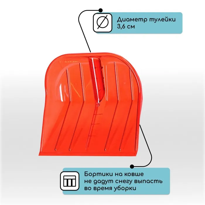 Ковш лопаты для уборки снега, 430×420 мм, поликарбонат, без планки, тулейка 36 мм, МИКС — Характеристики