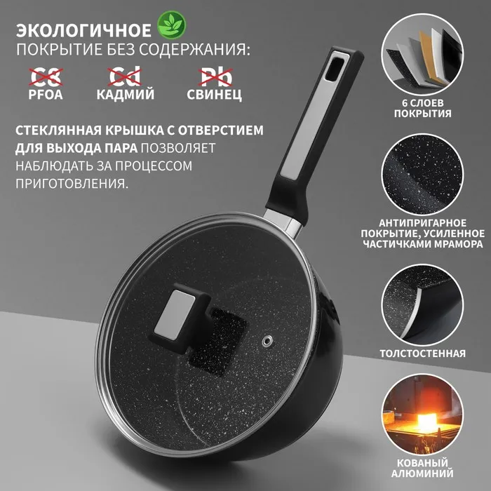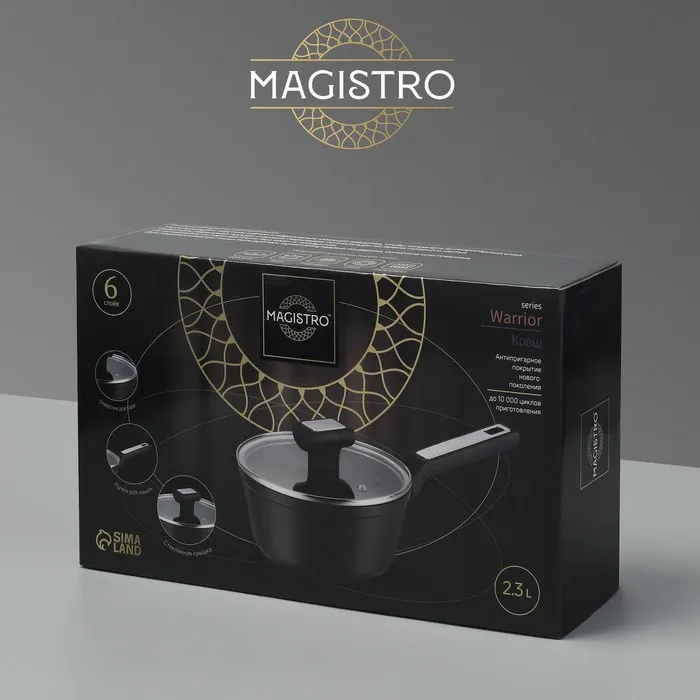 Ковш Magistro Warrior, 2.3 л, d=20 см, h=8.8 см, с крышкой, антипригарное покрытие, индукция — Характеристики