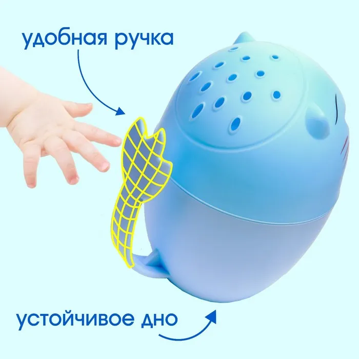 Ковш пластиковый для купания и мытья головы, детский банный ковшик «Котик», 500 мл., с леечкой, голубой — Характеристики