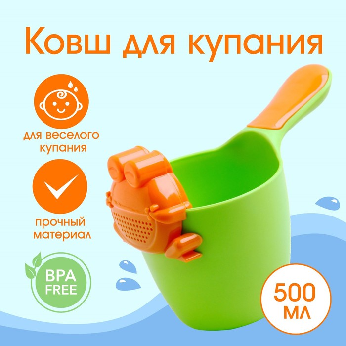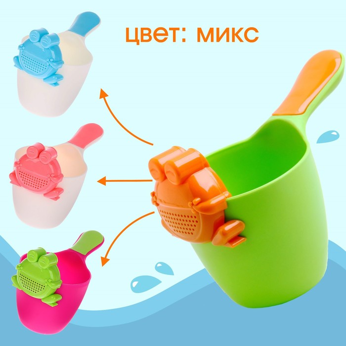 Ковш пластиковый для купания и мытья головы, детский банный ковшик «Лягушонок», 500 мл., с леечкой, МИКС — Характеристики