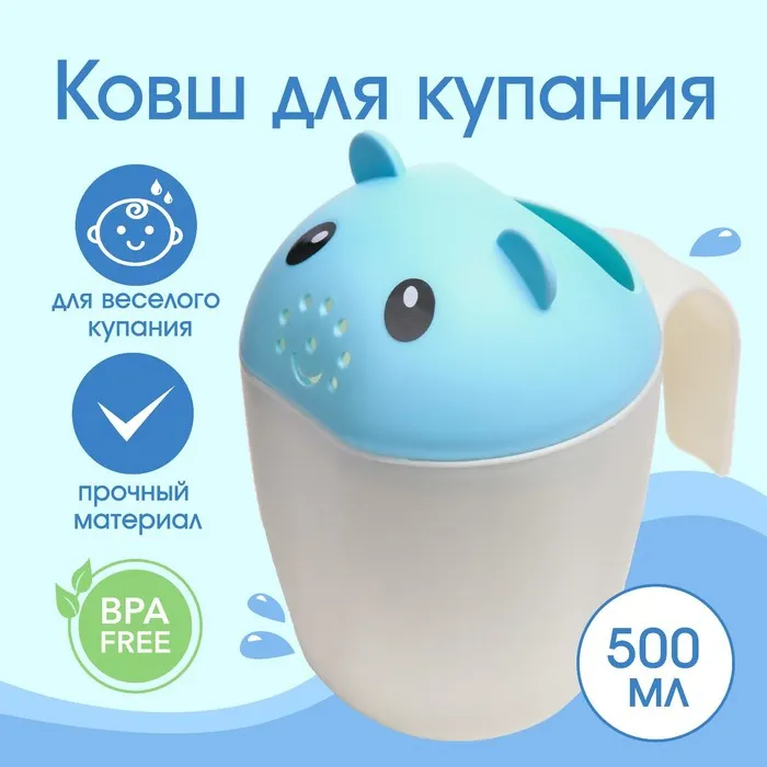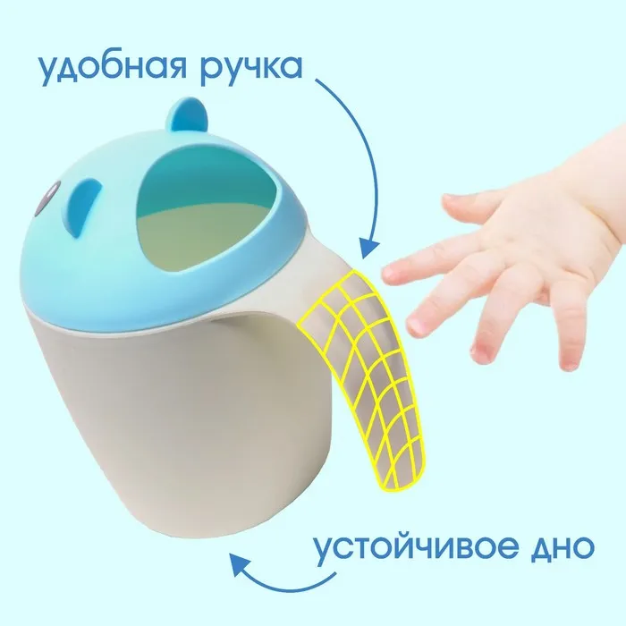 Ковш пластиковый для купания и мытья головы, детский банный ковшик «Мышка», 500 мл., с леечкой, цвет голубой — Характеристики