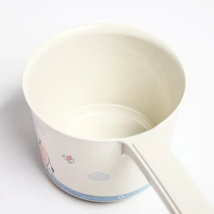 Пищевая пластмасса позволяет использовать ковш для питьевой воды и продуктов, а также в ванной, в саду и мн. др. Вплавляемая технология нанесения рисунка делает декор прочным, ярким, простым в уходе.
