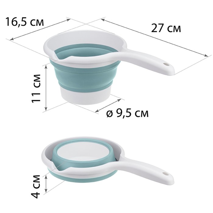 Ковш складной «Флекс», 1 л, 27×16,5×11 см, цвет морская волна — Характеристики