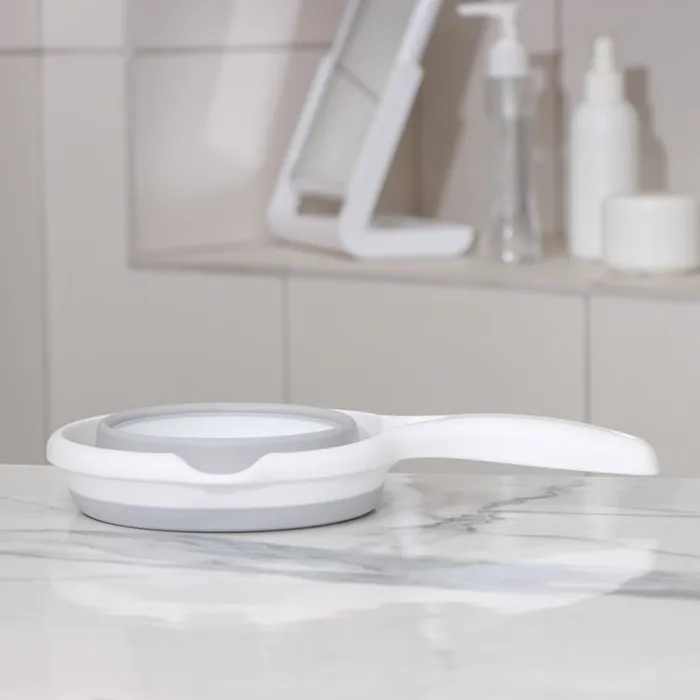 Чтобы разложить ковш надавите на дно рукой. Другой рукой возьмитесь за ручку и потяните основание движением на себя. Переверните ковш и проделайте то же самое, с другой стороны.
