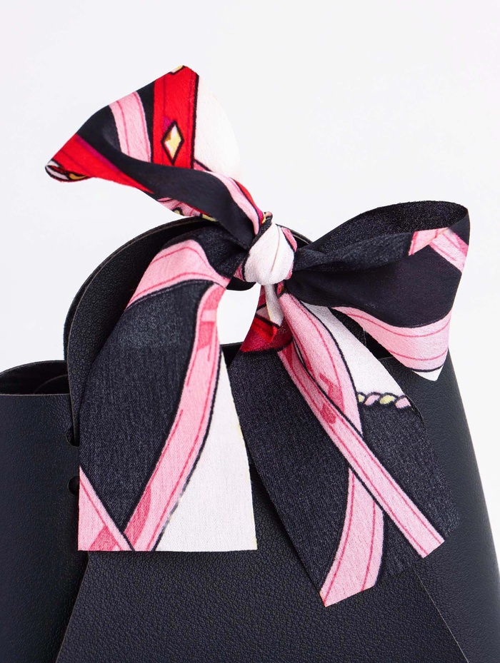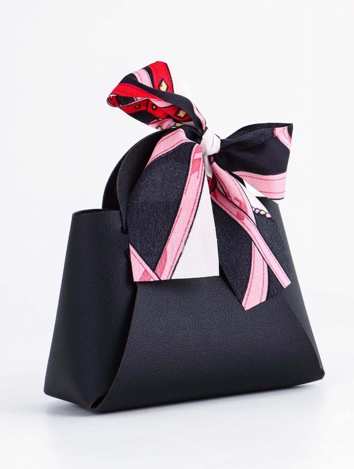 Кожаная подарочная сумочка для бижутерии и сувениров, чёрная с бантом (лента), 13×12×5.5 см — Характеристики