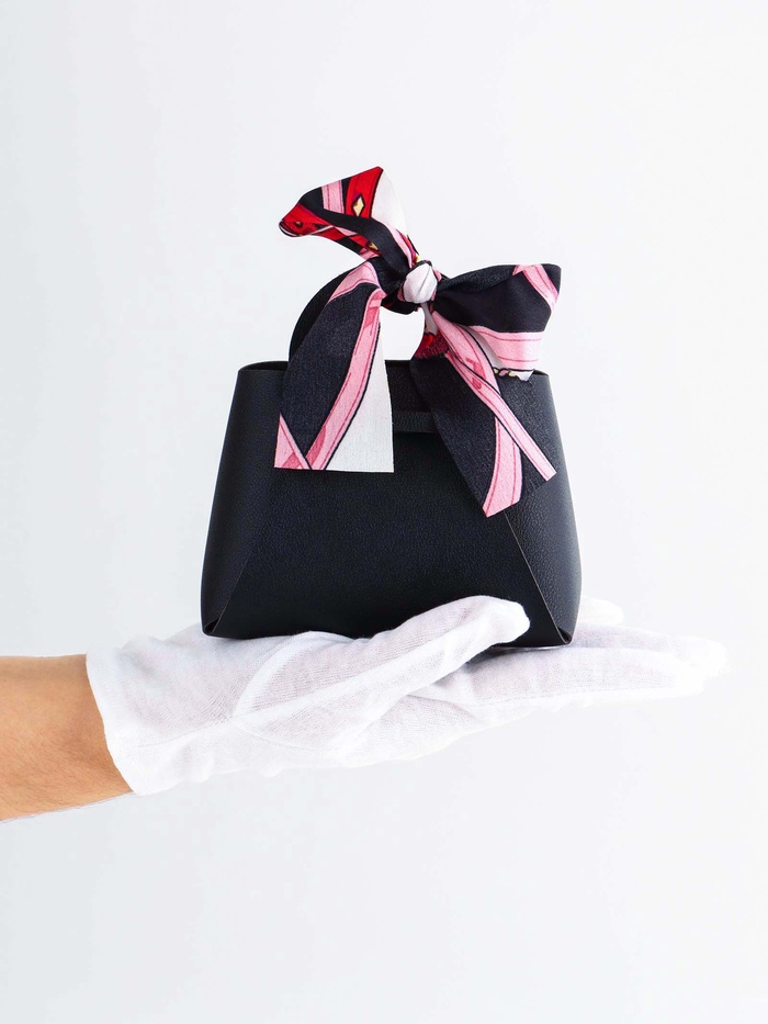 Классика в изящном исполнении! Черная сумочка-мешочек для украшений с контрастным бантом — это универсальный аксессуар для особенных подарков. Компактный футляр из экокожи выглядит строго и элегантно, создавая атмосферу церемониальности.