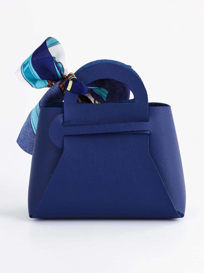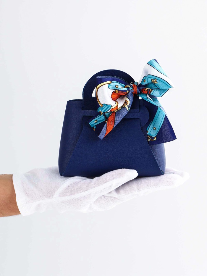 Кожаная подарочная сумочка для бижутерии и сувениров, глубокий синий с бантом (лента), 13×12×5.5 см — Характеристики