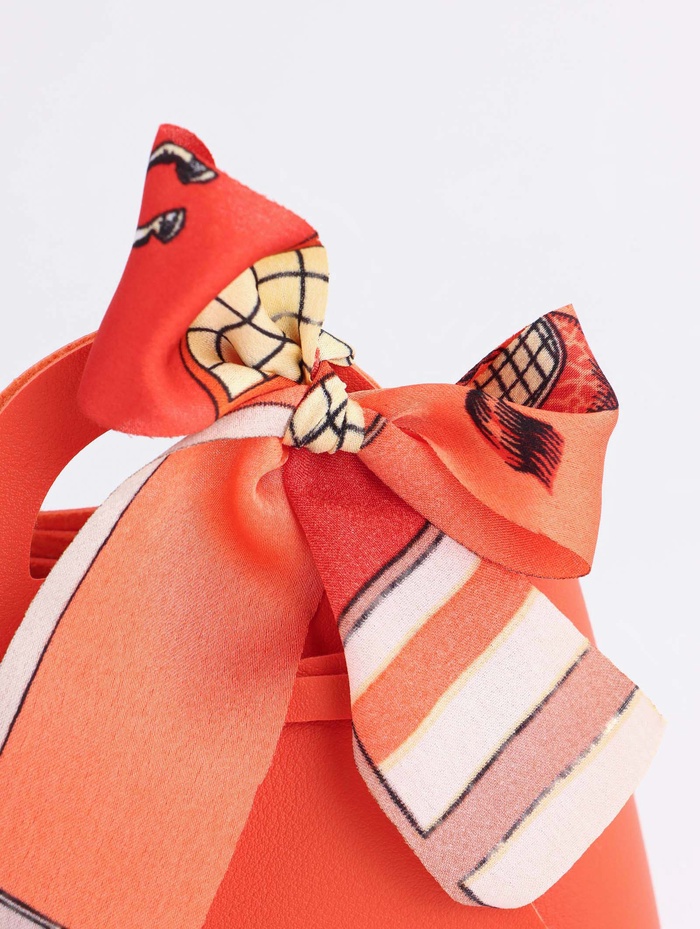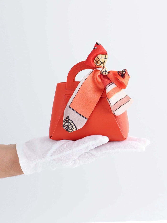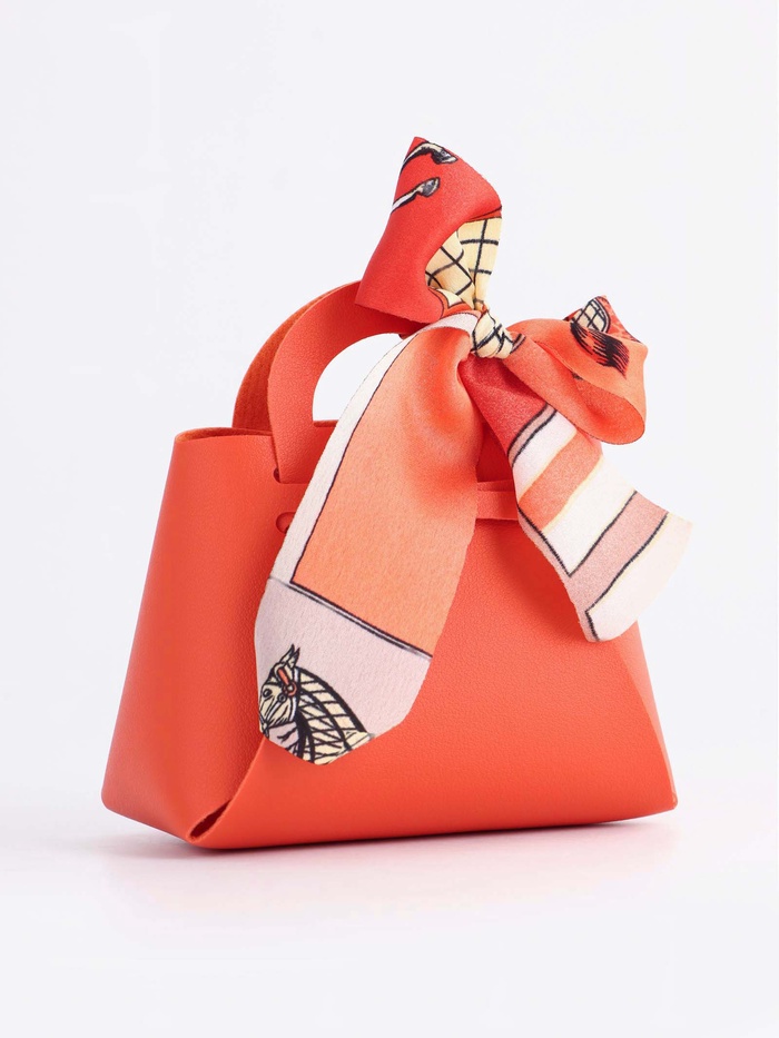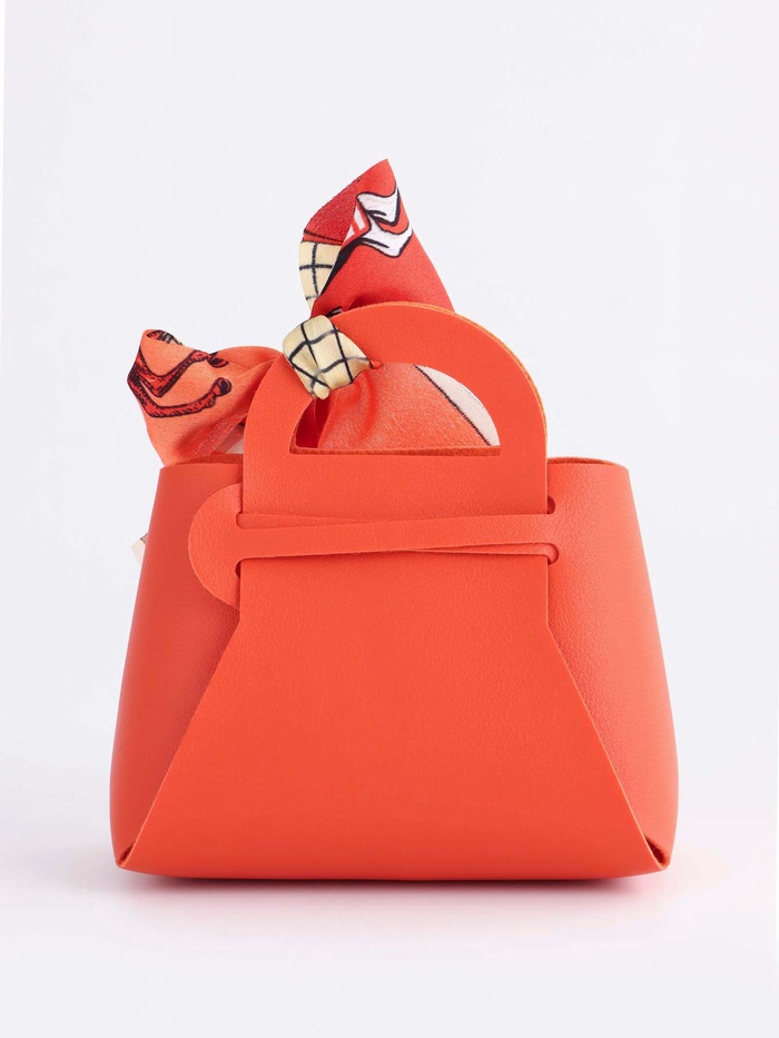 Кожаная подарочная сумочка для бижутерии и сувениров, оранжевая с бантом (лента), 13×12×5.5 см — Характеристики