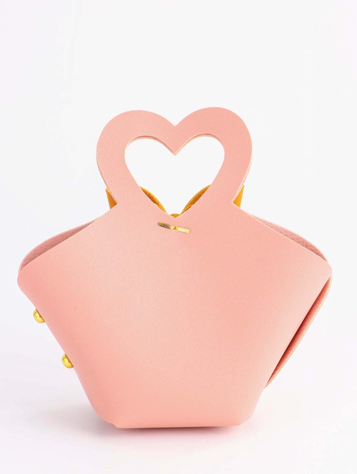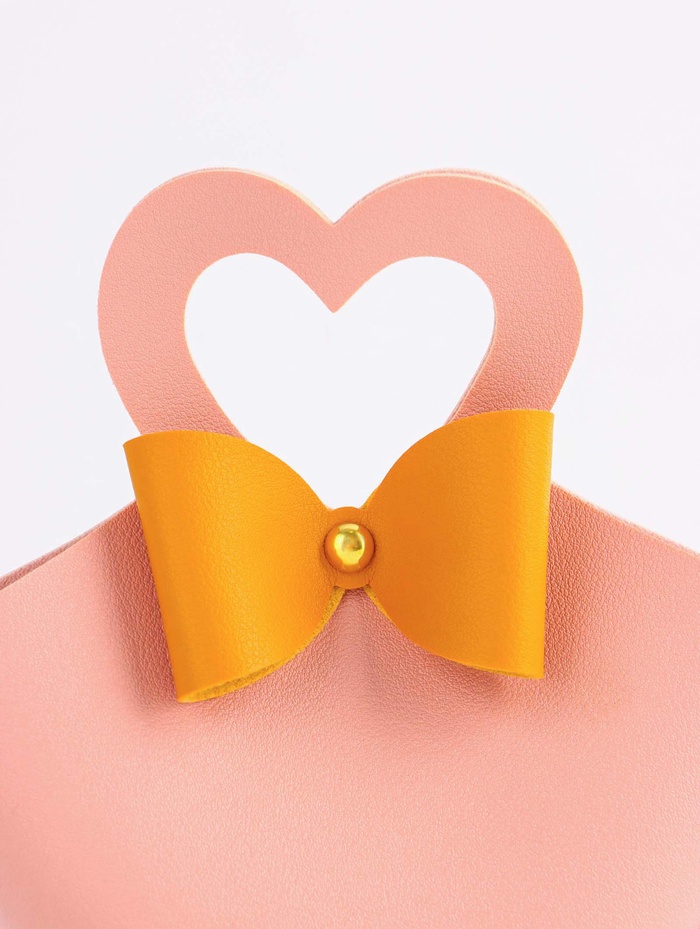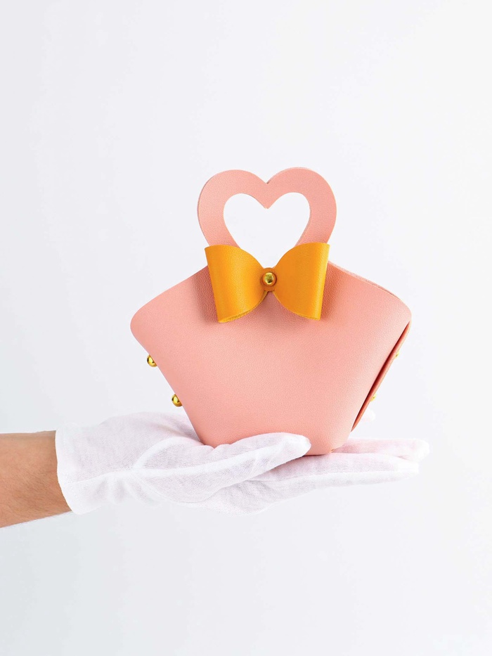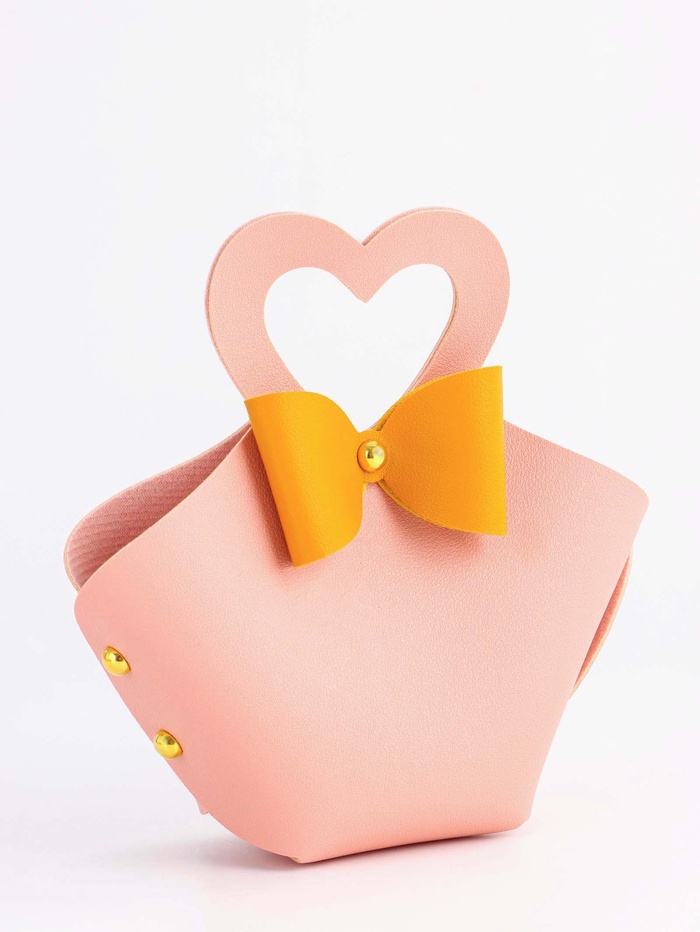 Кожаная подарочная сумочка для бижутерии и сувениров, розовая с бантом, 10.5×5×6 см — Характеристики