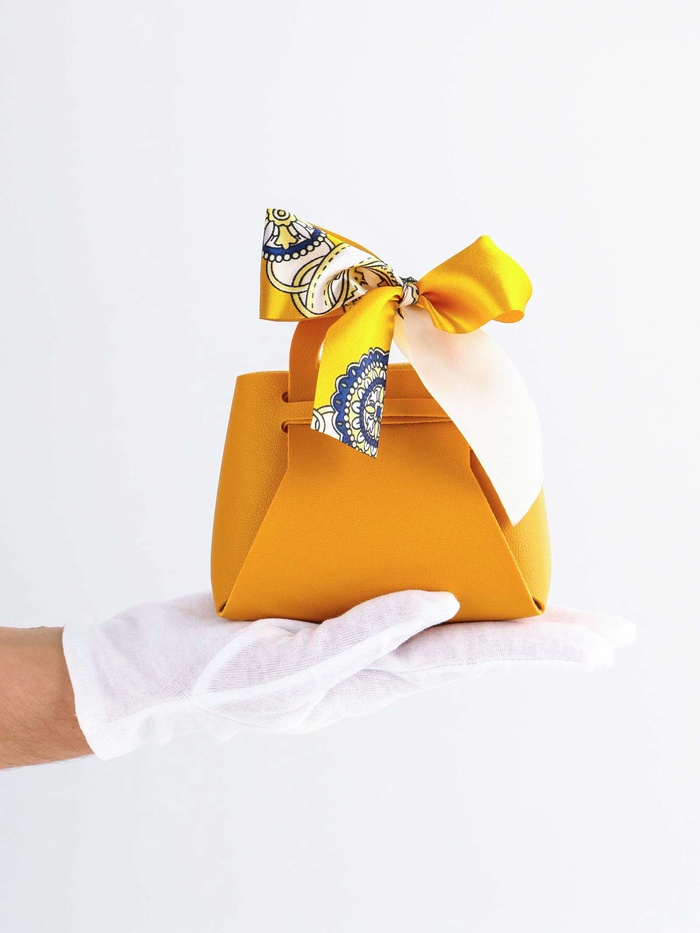 - Солнечное оформление: Теплый желтый цвет и шелковый бант создают ощущение радости и оптимизма. Футляр не требует дополнительной упаковки — он сразу готов стать стильной оболочкой для подарка.