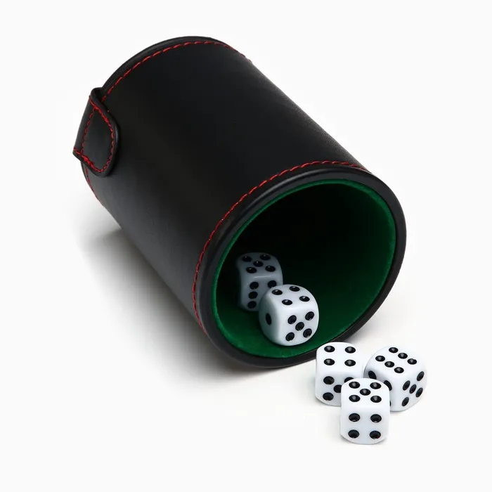 Кожаный стакан для игральных костей, 5 кубиков в комплекте, 7.9×10.2 см — Характеристики