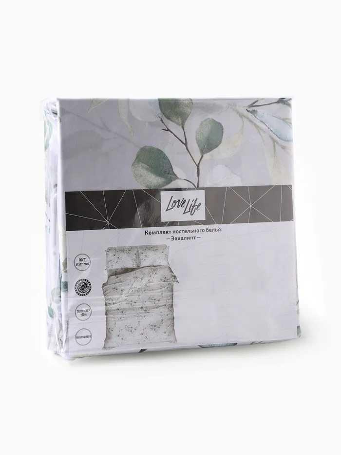 КПБ LoveLife евро "Эвкалипт" 200*217 см, 220*240 см,50*70 см - 2 шт, микрофайбер, 100% п/э — Характеристики