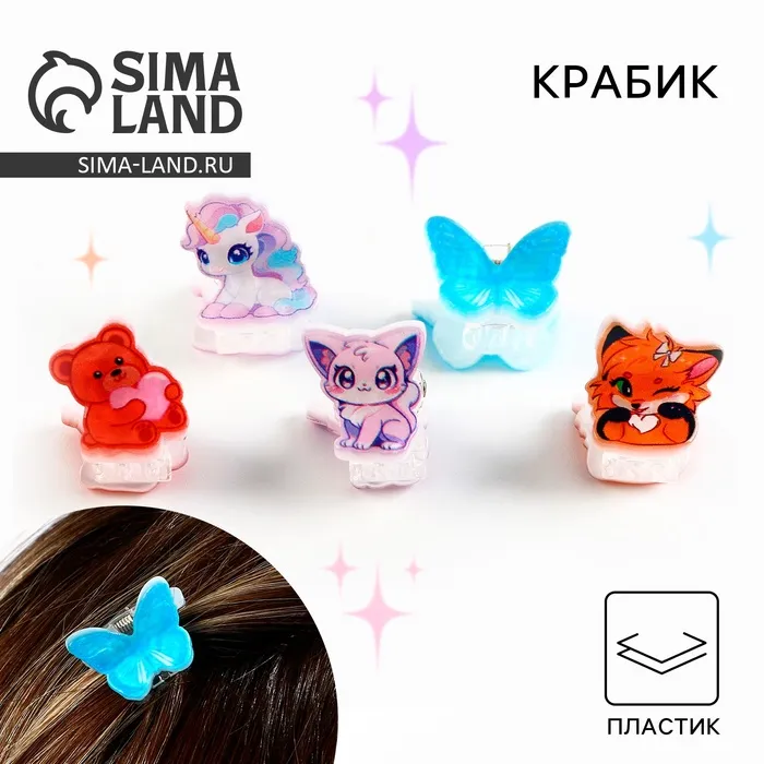 Краб для волос, 5 шт., МИКС