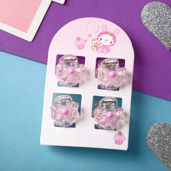 Краб для волос "Маленькая радость" (набор 4 шт) бантик, 2 см, розовый