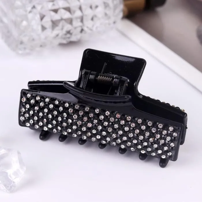 Краб для волос "Торжество" стразы, 8 см, чёрный