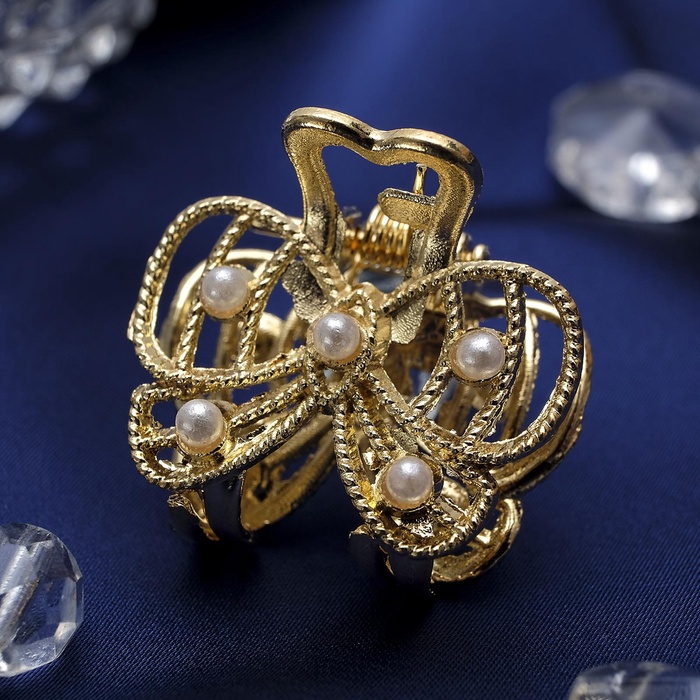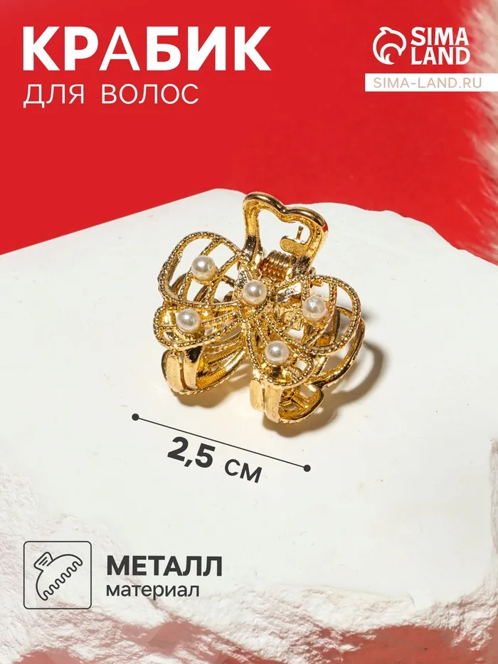 Крабик для волос «Бантик», жемчуг, 2.5 см, золото — Характеристики