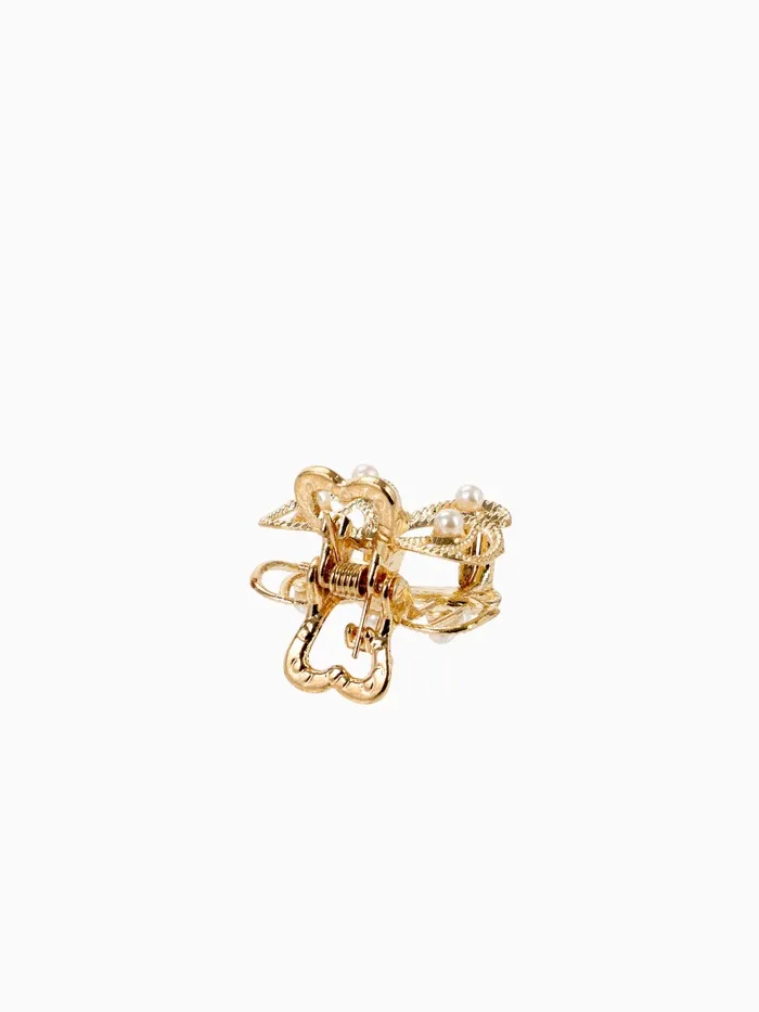 Крабик для волос «Бантик», жемчуг, 2.5 см, золото