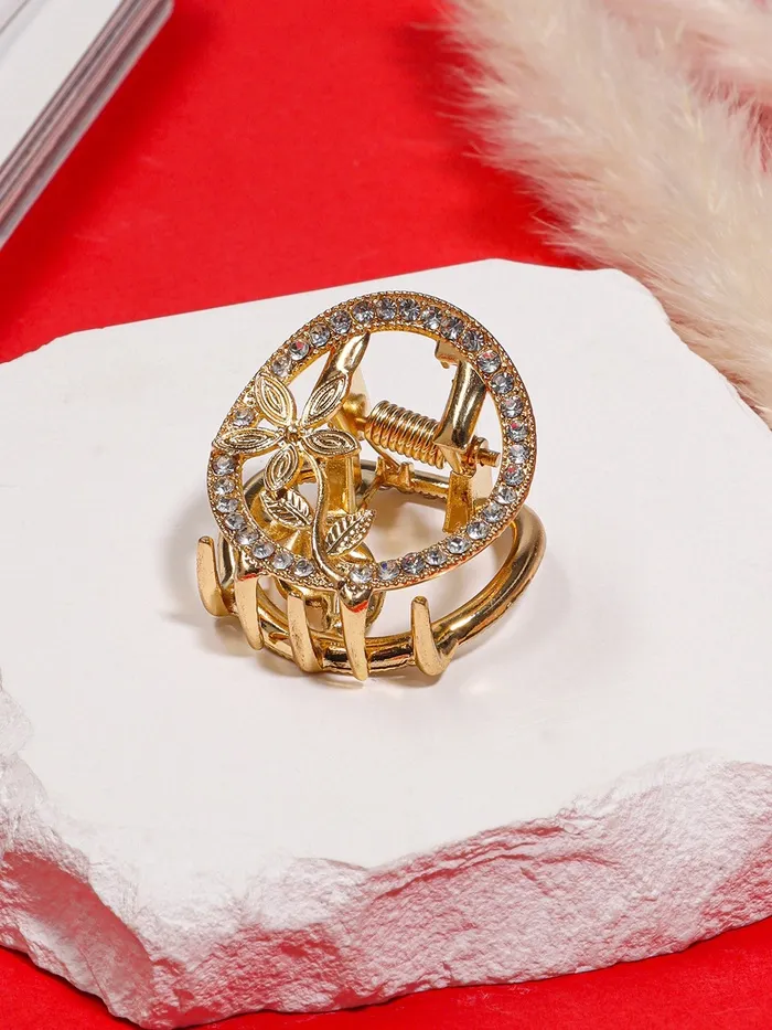 Добавьте элемент роскоши и элегантности вашему повседневному образу с золотым аксессуаром для волос. Зажим для волос «Флоранс» ― это идеальное сочетание утончённости и практичности, позволяя женщине с легкостью создавать стильные причёски на каждый день и для особых случаев.