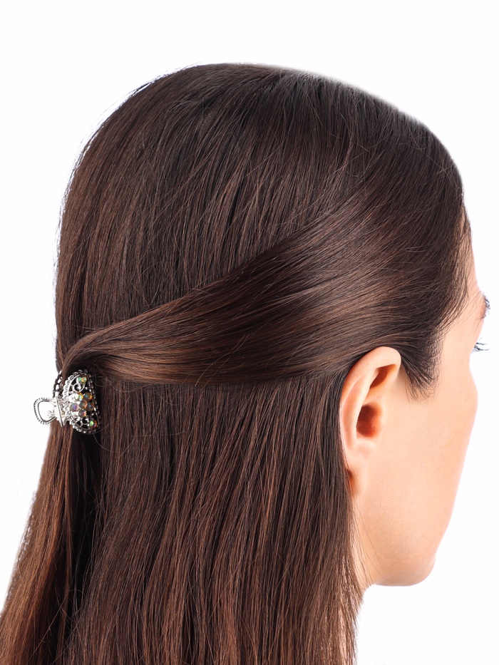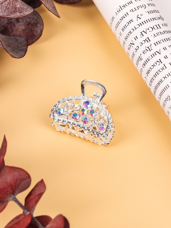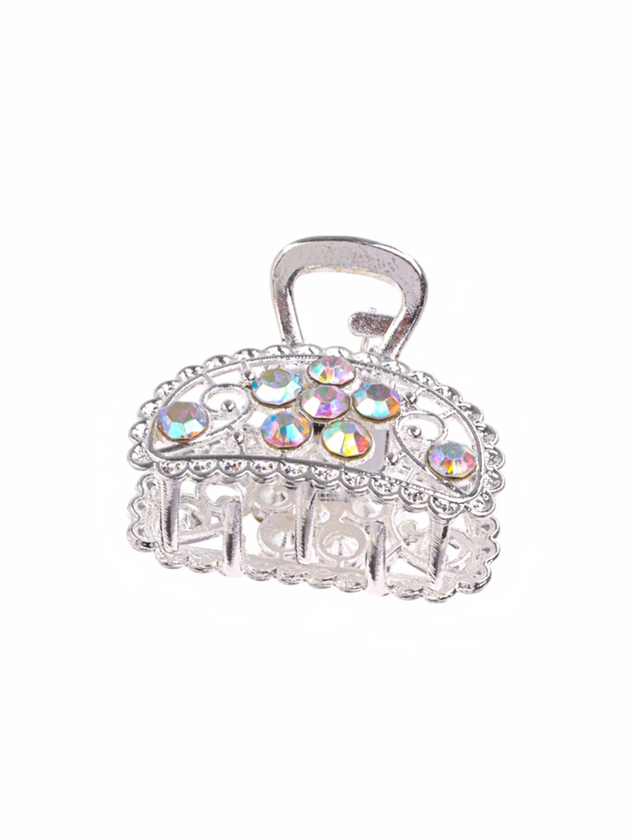 - Изящный дизайн: сложный узор в форме дуги добавляет особый шарм, а серебристый цвет делает крабик универсальным выбором для повседневного и праздничного образа.