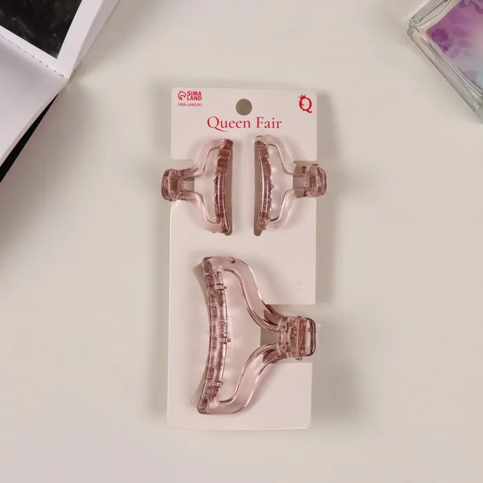 Крабик для волос «Флориана», набор 3 шт., дуга форма, 6.5 и 4 см, розовый