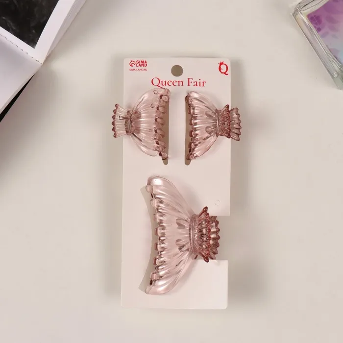 Крабик для волос «Флориана», набор 3 шт., мешочек, 6.5 и 4 см, розовый