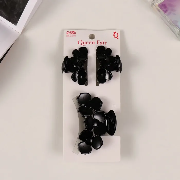 Крабик для волос «Флориана», набор 3 шт., цветы, 6.5 и 4 см, чёрный — Характеристики