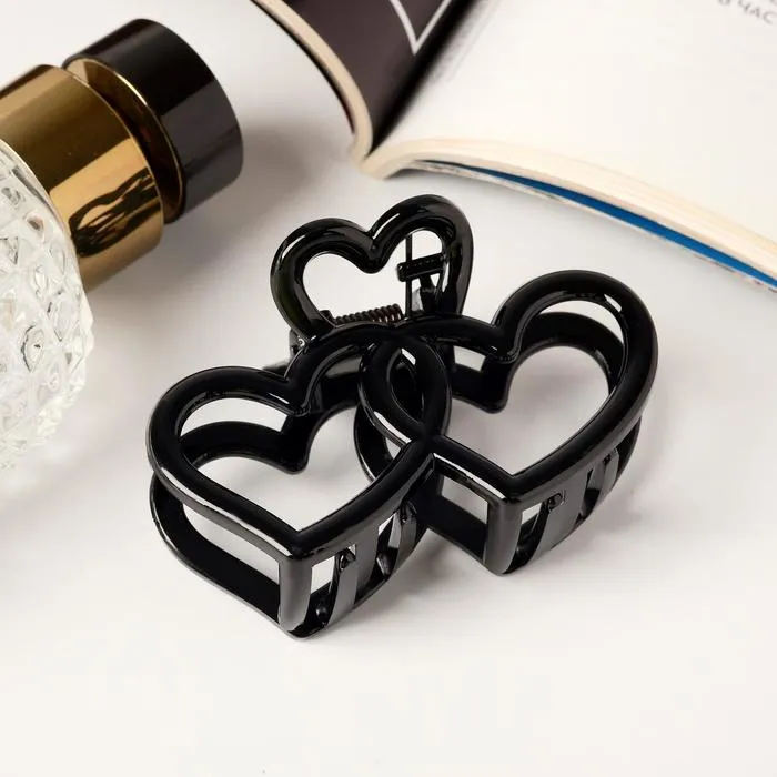 Крабик для волос «Глянец», сердца трио, 7×4.5 см, чёрный — Характеристики