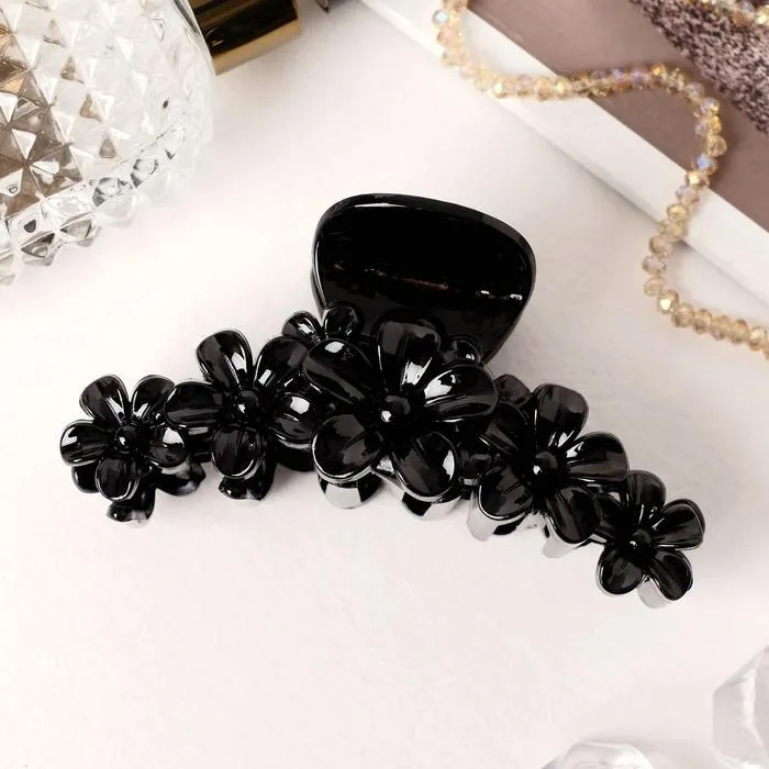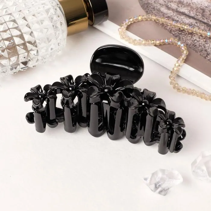Крабик для волос «Глянец», цветочная гирлянда, 9.5 см, чёрный