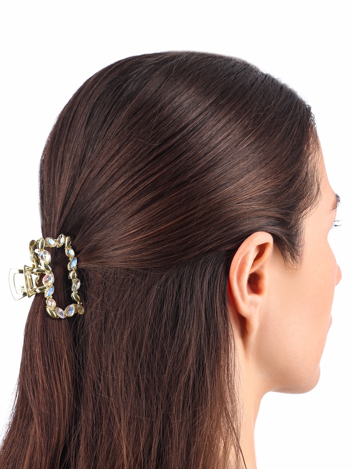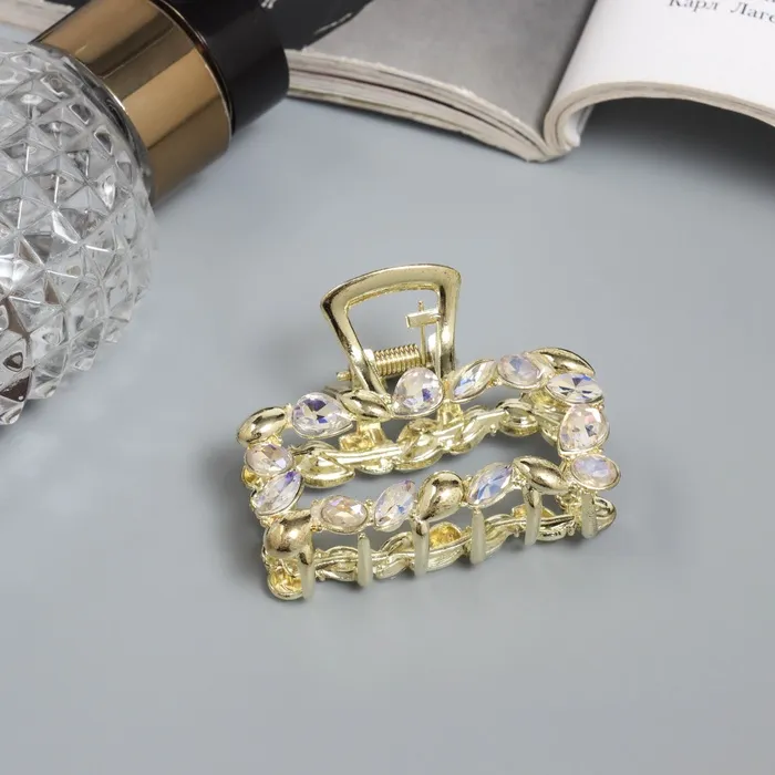 Элегантный аксессуар для волос в золотом цвете станет вашим незаменимым спутником в создании изысканных и стильных причёсок. Благодаря длине в 5 сантиметров, этот золотистый металлический зажим уверенно удерживает локоны, добавляя нотку шика вашему образу. Металлическая конструкция и стеклянные элементы обеспечивают прочность и блеск, которые привлекают взгляды. Независимо от случая, такой аксессуар для женщин подчеркнет вашу утончённость и вкус.