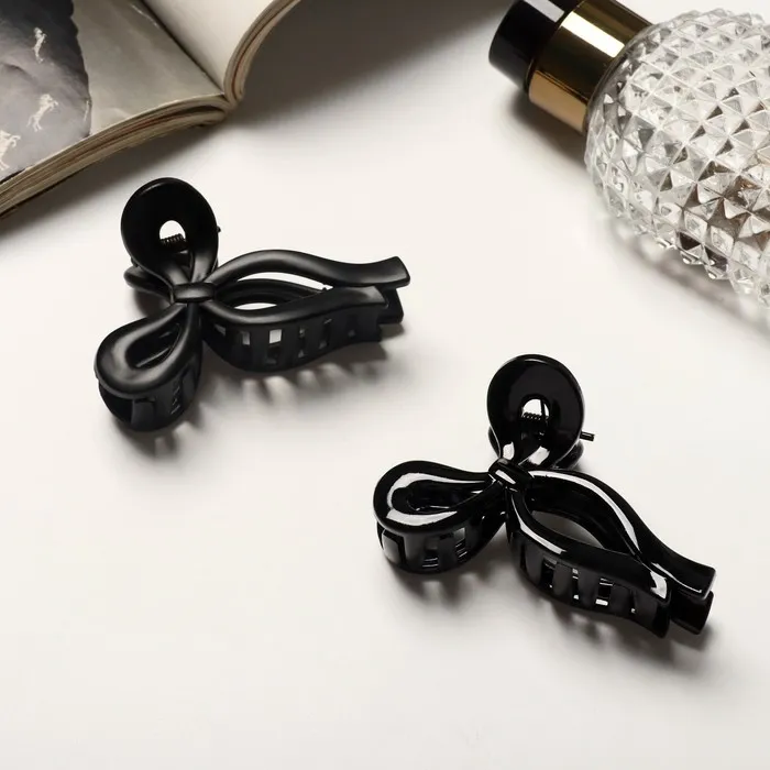 Крабик для волос «Классика», бантик, 7 см, чёрный матовый и глянец
