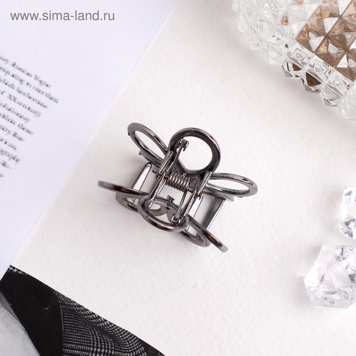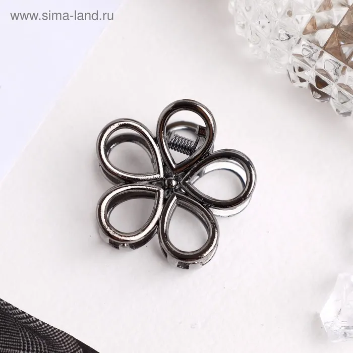Крабик для волос «Либерти», цветок, 4 см, тёмное серебро — Характеристики