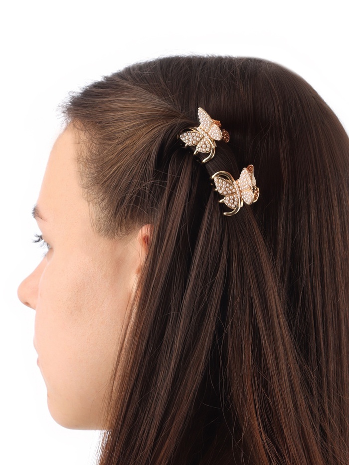 Добавь изящества в повседневную укладку! Золотистая заколка-бабочка для волос, 2,5 см – это стильный аксессуар для женщин и девочек, выполненный из качественного металла и пластика. Она прекрасно удерживает пряди и добавляет блеска образу.